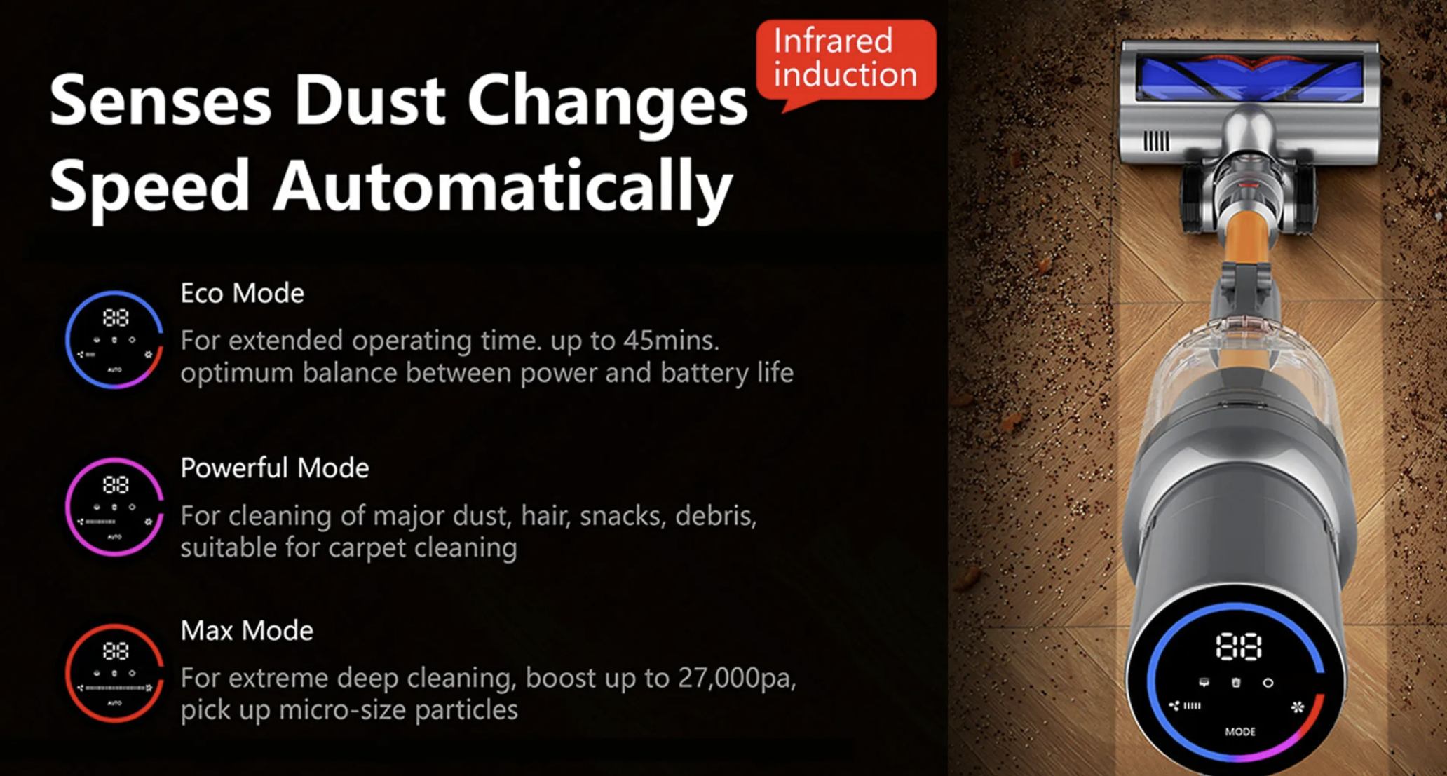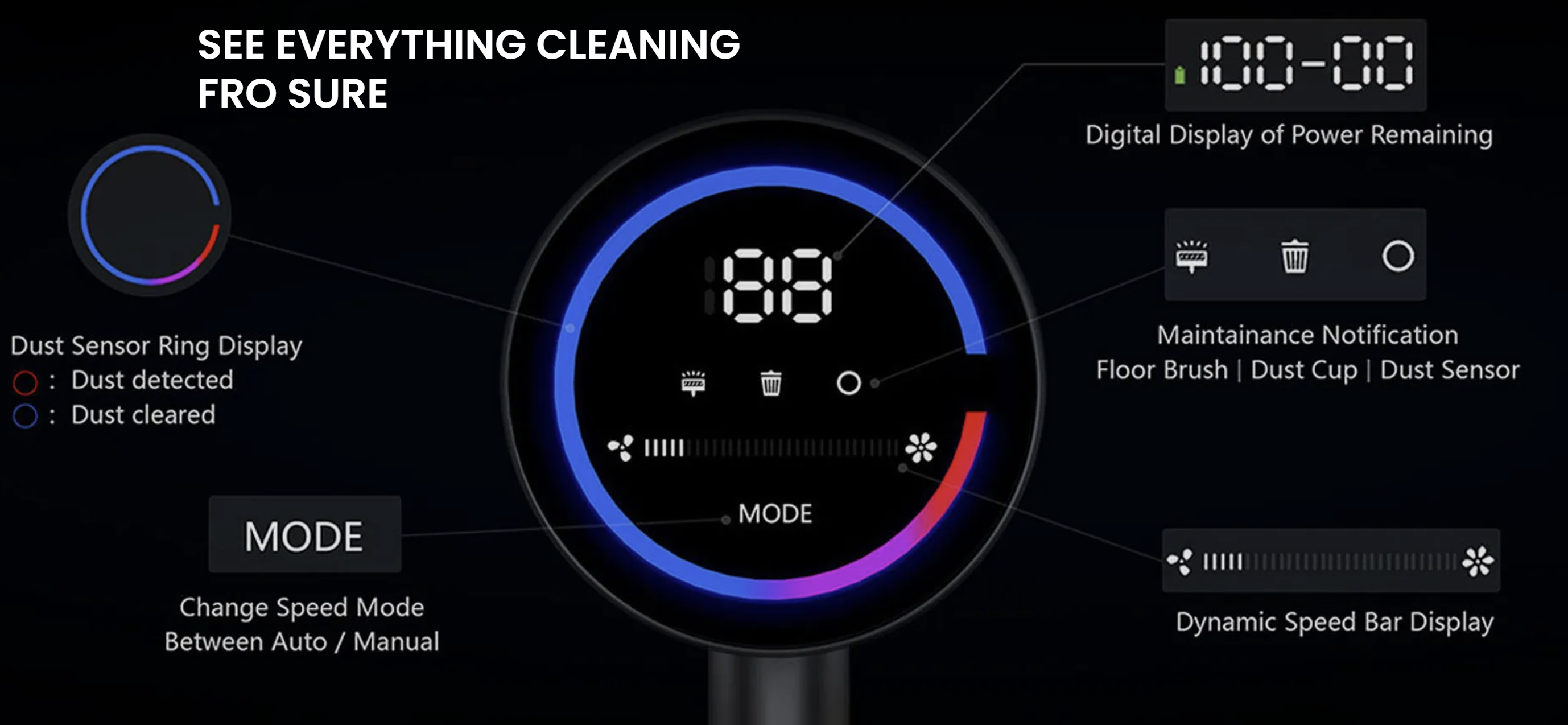 Smart Ring Detect ™ - Sense floor dust in real-time, dynamically change ring color on LED screen